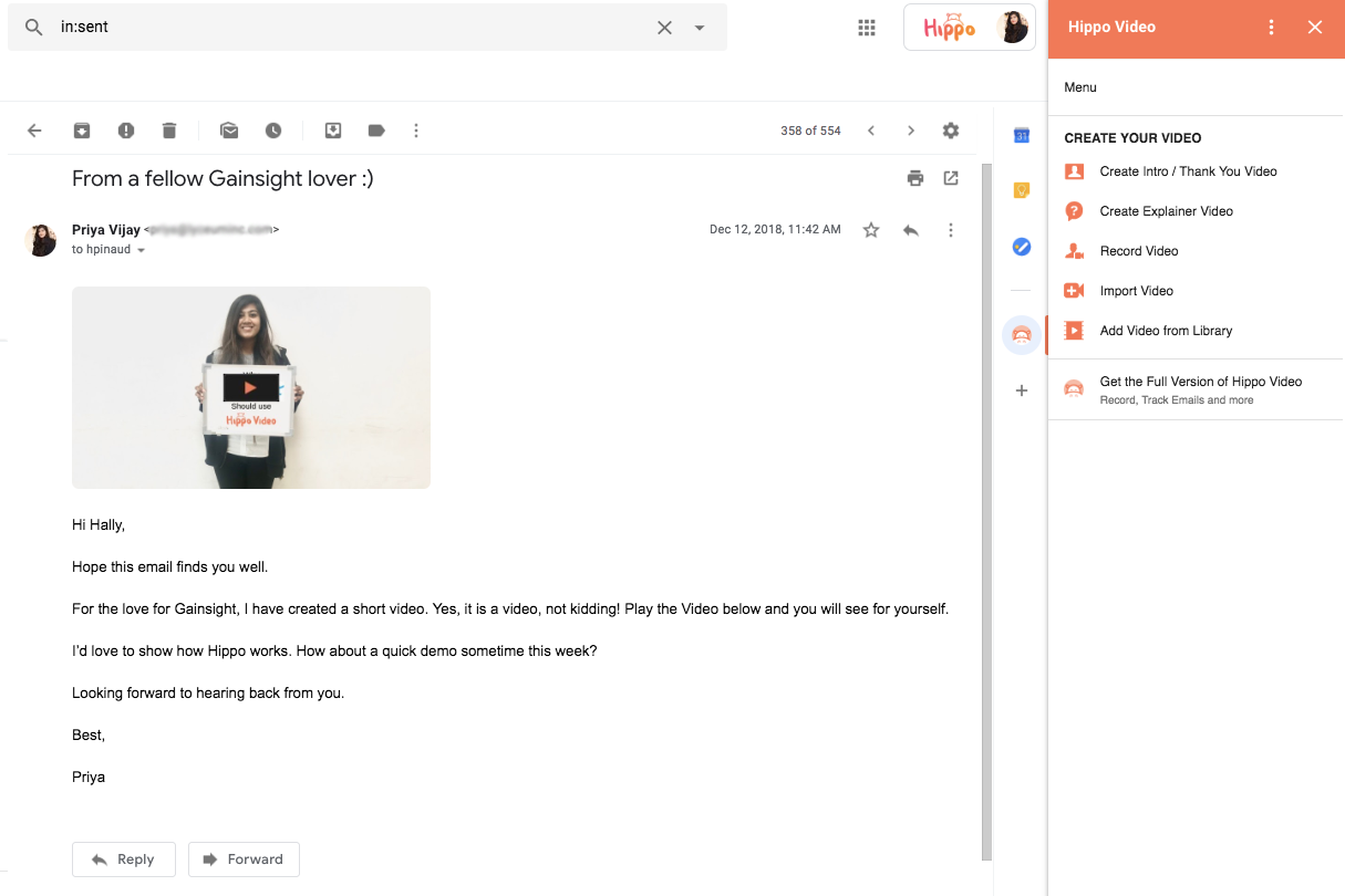 Record engaging video emails and send them to your prospects/leads via Hippo Video’s Gmail Add-on or Hippo Video’s Chrome extension. Build a warm relationship with your prospects through personalized videos and get the attention you deserve.